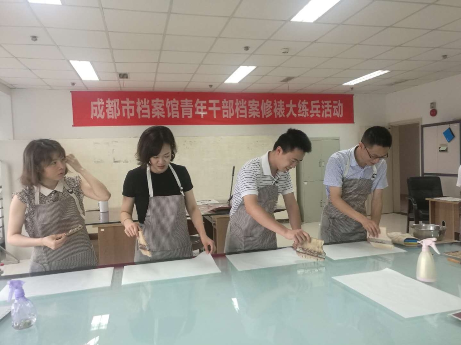 去年以來,成都市檔案館深入貫徹落實中央和國家機(jī)關(guān)、省直機(jī)關(guān)、市直機(jī)關(guān)黨的建設(shè)工作會議精神,著力抓好青年黨員干部理論學(xué)習(xí)、業(yè)務(wù)培訓(xùn),廣泛開展青年干部檔案整理大練兵活動,讓近幾年新進(jìn)館人員對檔案整理全流程進(jìn)行系統(tǒng)學(xué)習(xí),有力促進(jìn)成都檔案工作有序發(fā)展。此次檔案修裱大練兵活動是檔案整理大練兵活動的繼承和延續(xù),活動形式多樣,內(nèi)容豐富,涉及檔案修裱理論、溫濕度及蟲霉對檔案的影響、修裱漿糊調(diào)制、檔案修裱實際操作等業(yè)務(wù)知識。