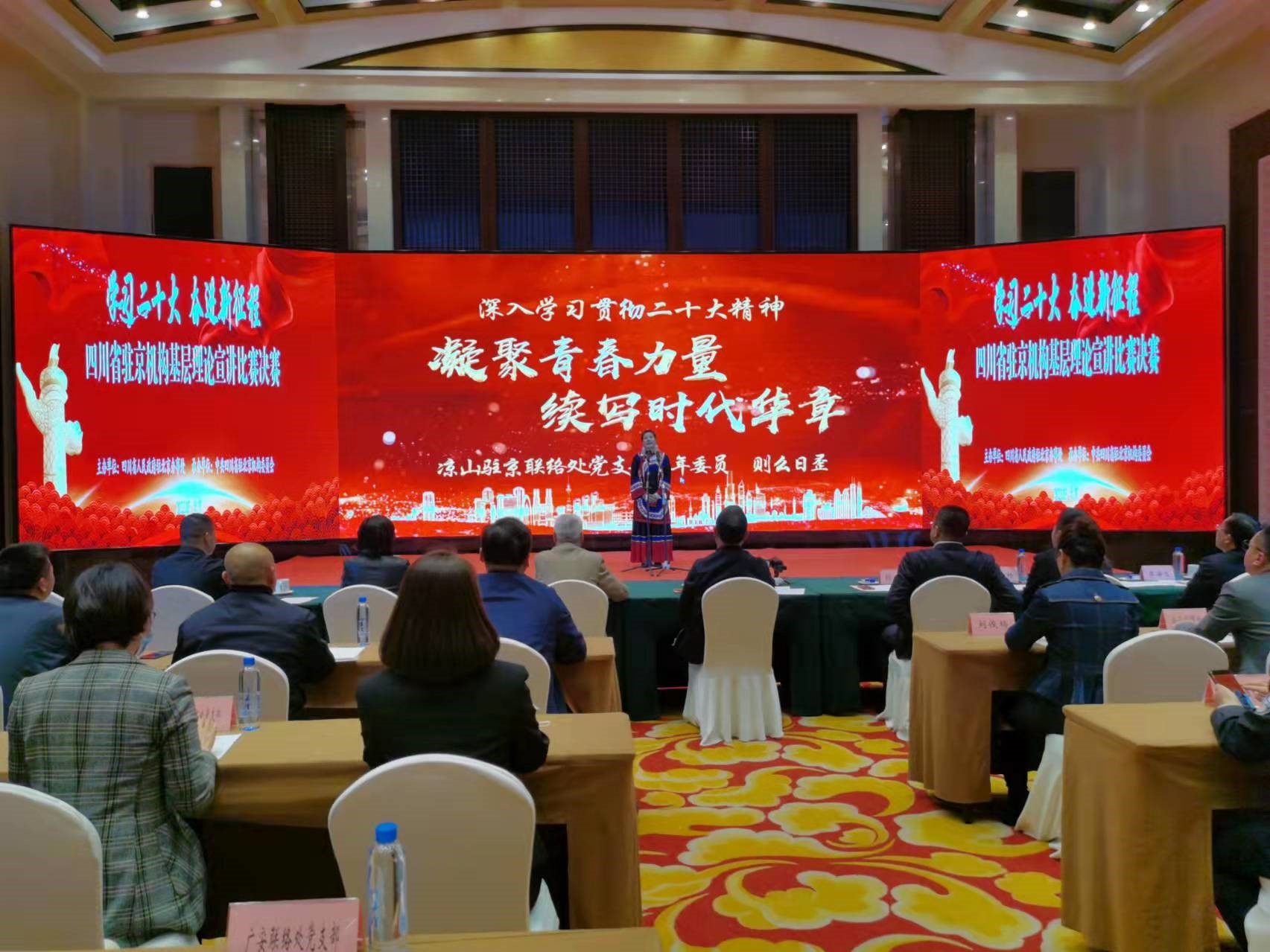 3月30日,“學(xué)習(xí)二十大 奮進(jìn)新征程”——四川省駐京機(jī)構(gòu)基層理論宣講比賽決賽在北京舉行。按照省直機(jī)關(guān)工委和全省駐京工作有關(guān)安排,四川省駐京機(jī)構(gòu)基層理論宣講比賽于2月啟動(dòng)。此次比賽旨在深入學(xué)習(xí)宣傳貫徹黨的二十大精神,認(rèn)真落實(shí)省第十二次黨代會(huì)和省委十二屆二次全會(huì)決策部署,培育選拔基層理論宣講人才,提升基層理論宣講水平,推動(dòng)四川省駐京機(jī)構(gòu)理論宣講工作取得新突破。