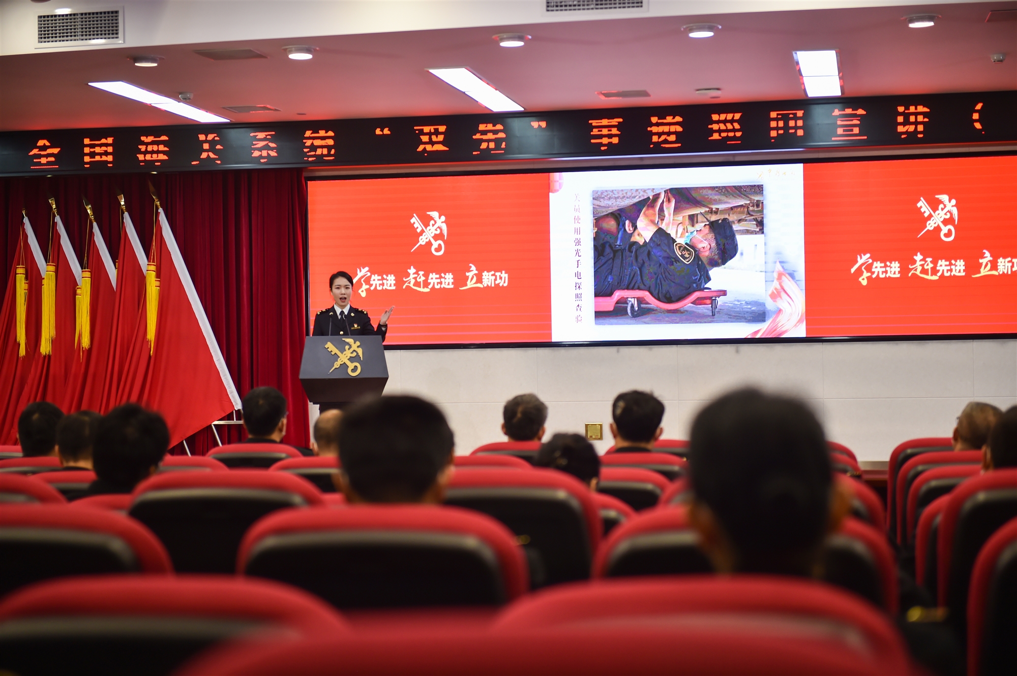 3月29日全國海關(guān)系統(tǒng)“雙先”事跡巡回宣講活動在成都海關(guān)舉行,成都海關(guān)黨委委員、政治部主任張曉菲和第二小分隊隊長、寧波海關(guān)政治部主任、黨委委員、一級巡視員鐘海澄出席活動并致辭,寧波海關(guān)、長沙海關(guān)、南寧海關(guān)、昆明海關(guān)、成都海關(guān)的5名先進典型代表進行現(xiàn)場宣講,宣講會穿插詩朗誦、快板、合唱、四川清音等文藝節(jié)目。該關(guān)各部門單位負責人和干部職工代表共計260余人在主、分會場參加活動。