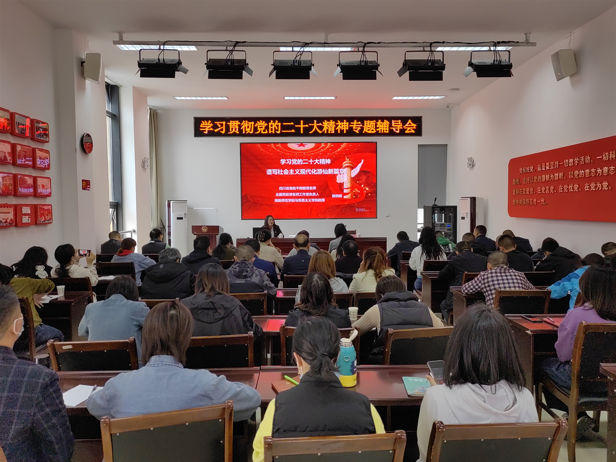 活動邀請了全國思政課名師工作室負(fù)責(zé)人、四川省委宣講團(tuán)成員、綿陽師范學(xué)院馬克思主義學(xué)院副院長韓曉娟專題宣講黨的二十大精神。韓教授從“盡識廬山真面目:思黨的二十大精神之厚重”“不畏浮云遮望眼:思黨的二十大精神之內(nèi)涵”“咬定青山不放松:思黨的二十大精神之貫徹”等三個方面,點面結(jié)合、深入淺出、巧入簡出,為黨員干部系統(tǒng)解讀了黨的二十大精神,具有很強(qiáng)的理論性、指導(dǎo)性和針對性,為深入學(xué)習(xí)貫徹黨的二十大精神提供了科學(xué)引領(lǐng)。