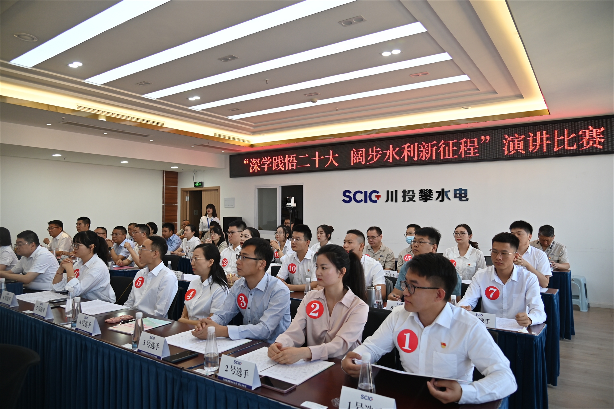 上午,在攀水電公司會議室開展“深學(xué)踐悟二十大 闊步水利新征程”演講比賽。參賽選手來自攀枝花市水利局、攀水電公司所屬12個支部,共計18名黨員和青年干部選手參賽。參賽選手紛紛結(jié)合自身工作職責、崗位實際,從不同內(nèi)容、不同層面、不同角度生動講述了學(xué)習習近平新時代中國特色社會主義思想和黨的二十大精神的深刻體會,分享了堅守初心使命、勇立潮頭建新功的奮斗故事。他們或慷慨激昂、或直抒胸臆、或娓娓道來,一個個生動的故事、一次次真情流露、一句句鏗鏘誓言,充分體現(xiàn)了對黨的絕對忠誠、對水利水電事業(yè)的真情表白,現(xiàn)場氣氛一次次被推向高潮。場評委對本次演講比賽進行了充分肯定和精彩點評,各位選手通過演講比賽充分展現(xiàn)了攀枝花水利水電行業(yè)全體干部職工踔厲奮發(fā),銳意進取,勇?lián)鷷r代重任的新氣象、新風貌。