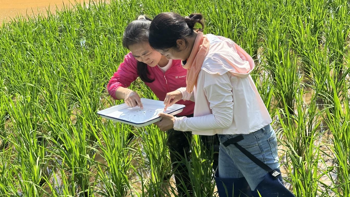 “90后”農技員同“60后”農技員在田間收集蟲情。他們共同踐行“一線工作法”,深入田間地頭,為水稻病蟲害防控筑牢安全底線,保證全縣水稻的豐產增收。同時,農技員堅持增加調查頻率,固定監(jiān)測設備調查和田間普查相結合,準確掌握病蟲發(fā)生動態(tài),及時組織會商,發(fā)布病蟲情報,暢通信息傳遞渠道,并及時將病蟲發(fā)生與防治信息傳遞至農戶。