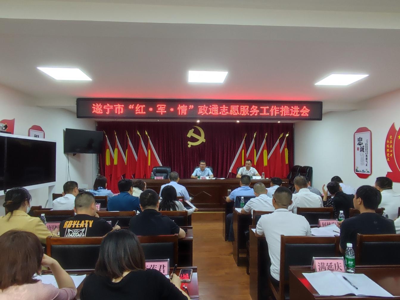 5月23日,遂寧市“紅·軍·情”政通志愿服務工作推進現(xiàn)場會在大英縣召開。遂寧市退役軍人事務局黨組書記、局長唐思倫出席會議并講話。