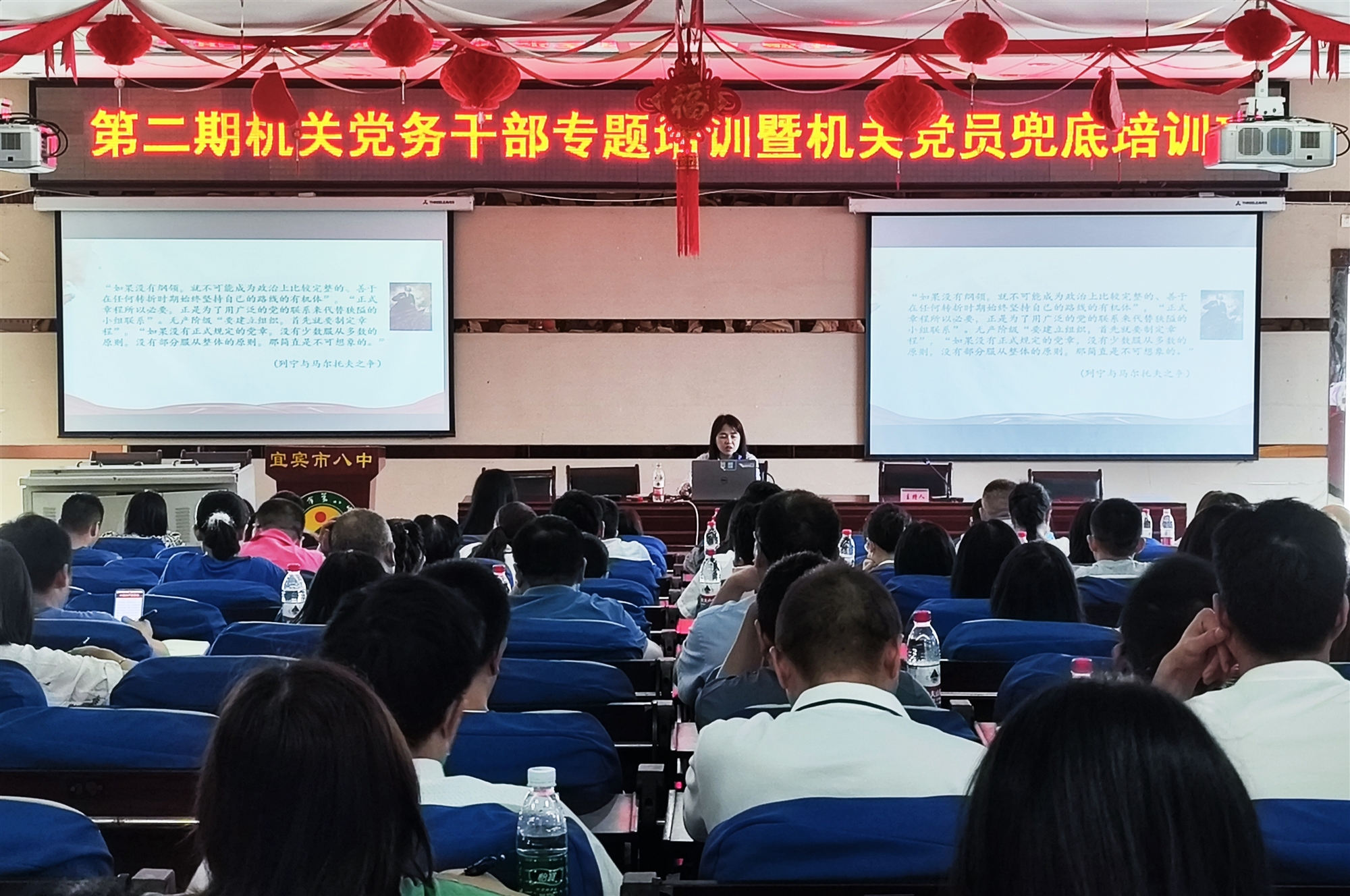 為進(jìn)一步促進(jìn)區(qū)直機(jī)關(guān)黨員干部牢固樹立黨章意識(shí),加強(qiáng)黨性修養(yǎng),錘煉過(guò)硬作風(fēng)。5月26日,宜賓市翠屏區(qū)直機(jī)關(guān)工委第二期“三心奮進(jìn)新翠屏”機(jī)關(guān)大講堂以黨章為學(xué)習(xí)主題,對(duì)機(jī)關(guān)黨務(wù)干部進(jìn)行專題培訓(xùn),并對(duì)機(jī)關(guān)黨員開展兜底培訓(xùn)。本次培訓(xùn)特邀省直機(jī)關(guān)黨校黨建黨史教研部副主任、副教授翁瑩香作專題講授,區(qū)直機(jī)關(guān)黨組織負(fù)責(zé)人、黨務(wù)干部、部分機(jī)關(guān)黨員共190人參加本期培訓(xùn)。
