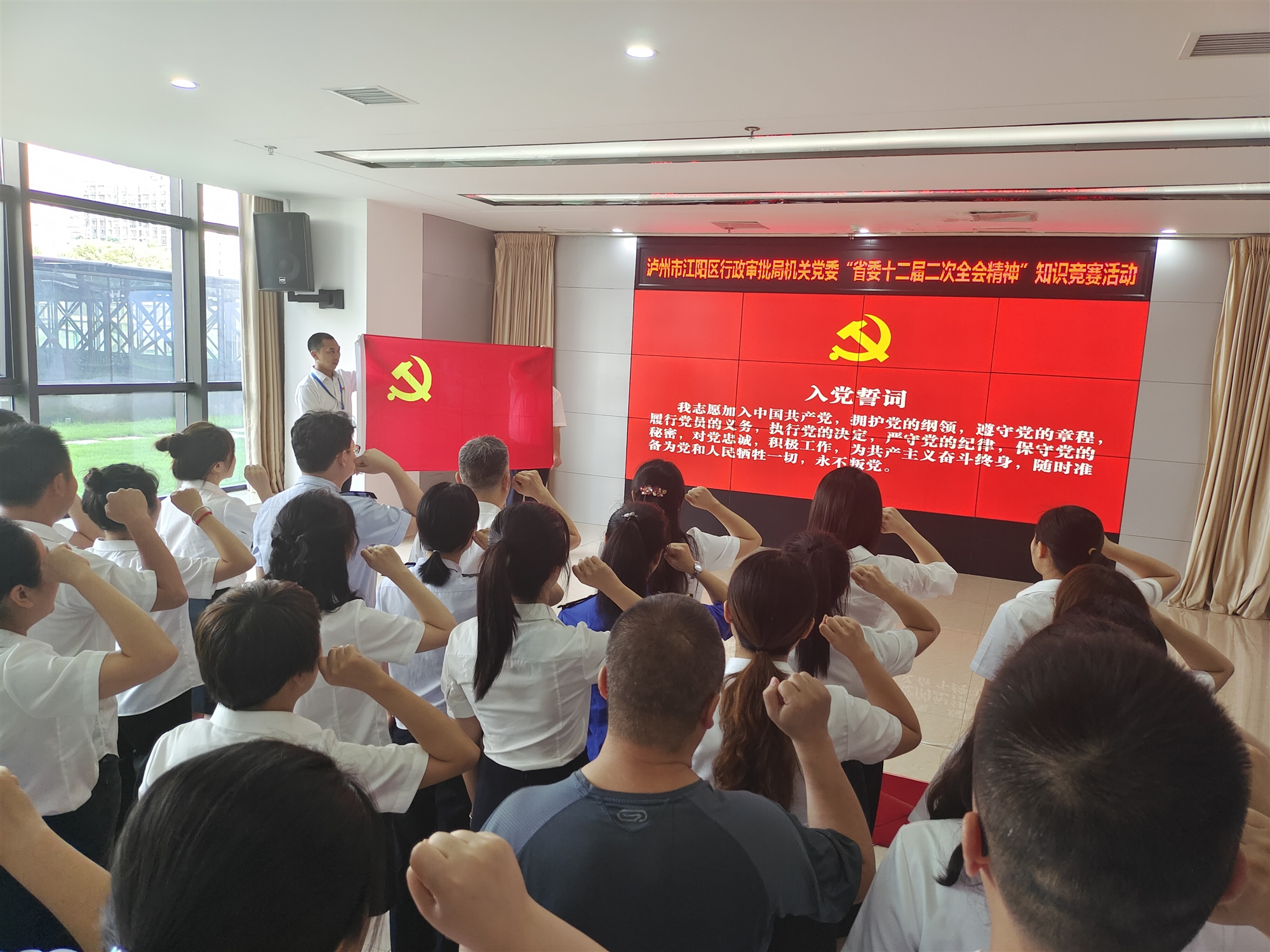 為迎接中國共產(chǎn)黨成立102周年,全面落實(shí)黨的二十大精神和習(xí)近平總書記來川視察重要指示批示精神,充分發(fā)揮先進(jìn)典型的示范引領(lǐng)作用,切實(shí)增強(qiáng)黨員黨性意識(shí)、責(zé)任意識(shí),不斷提高黨組織創(chuàng)造力、凝聚力和戰(zhàn)斗力。近日,江陽區(qū)行政審批局機(jī)關(guān)黨委組織全體黨員同志開展了“重溫入黨誓詞”、知識(shí)競(jìng)賽系列活動(dòng)。