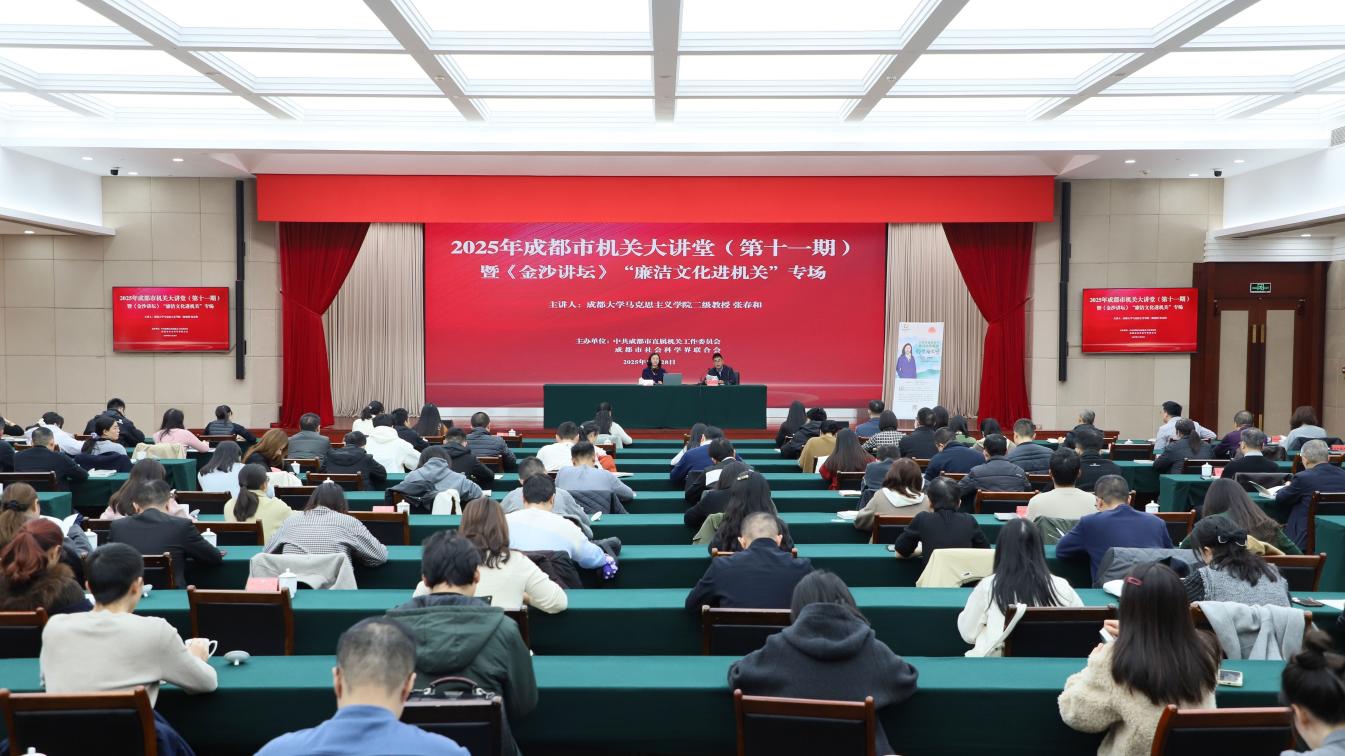 為深入學(xué)習(xí)貫徹習(xí)近平總書記關(guān)于黨的自我革命的重要思想,進(jìn)一步加強(qiáng)新時(shí)代廉潔文化建設(shè),推動(dòng)廉潔機(jī)關(guān)建設(shè)走深走實(shí),11月28日,成都市直機(jī)關(guān)工委聯(lián)合成都市社科聯(lián)(院)舉辦成都市機(jī)關(guān)大講堂(第十一期)暨《金沙講壇》“廉潔文化進(jìn)機(jī)關(guān)”專場(chǎng),邀請(qǐng)成都大學(xué)馬克思主義學(xué)院二級(jí)教授張春和,為來自80個(gè)市直部門(單位)的160余名機(jī)關(guān)干部作專題輔導(dǎo)講座,幫助機(jī)關(guān)黨員干部進(jìn)一步厘清社交邊界、明晰紀(jì)律紅線、涵養(yǎng)清風(fēng)正氣。
