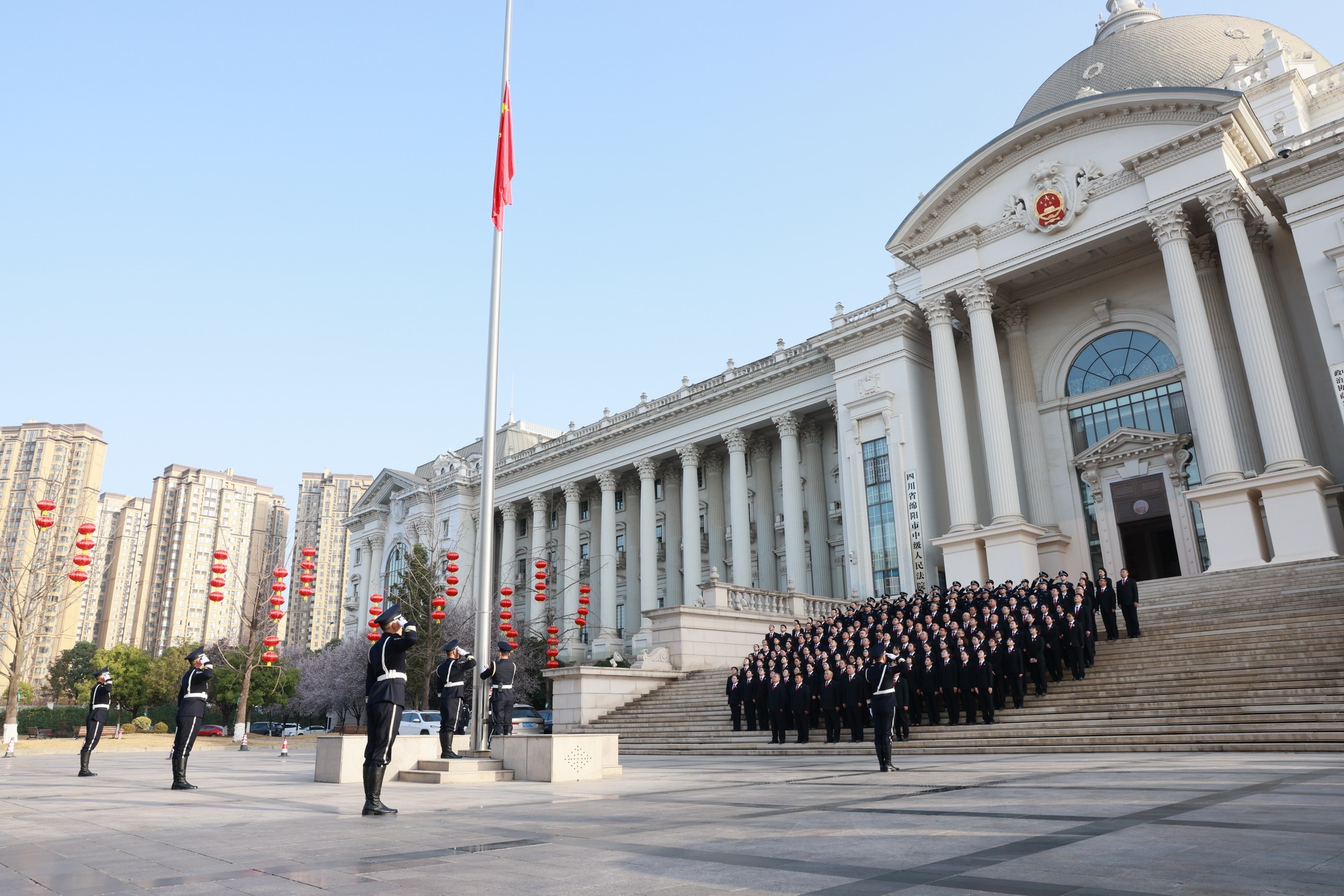為進一步強化干警廉潔自律意識,筑牢拒腐防變思想防線,凝聚司法為民、公正司法的奮進力量,2月24日,春節(jié)后上班第一天,綿陽市中級人民法院組織全體干警開展升國旗暨“嚴守紀律規(guī)定、樹牢廉潔底線”主題黨日活動,以莊重儀式開啟新一年履職征程。