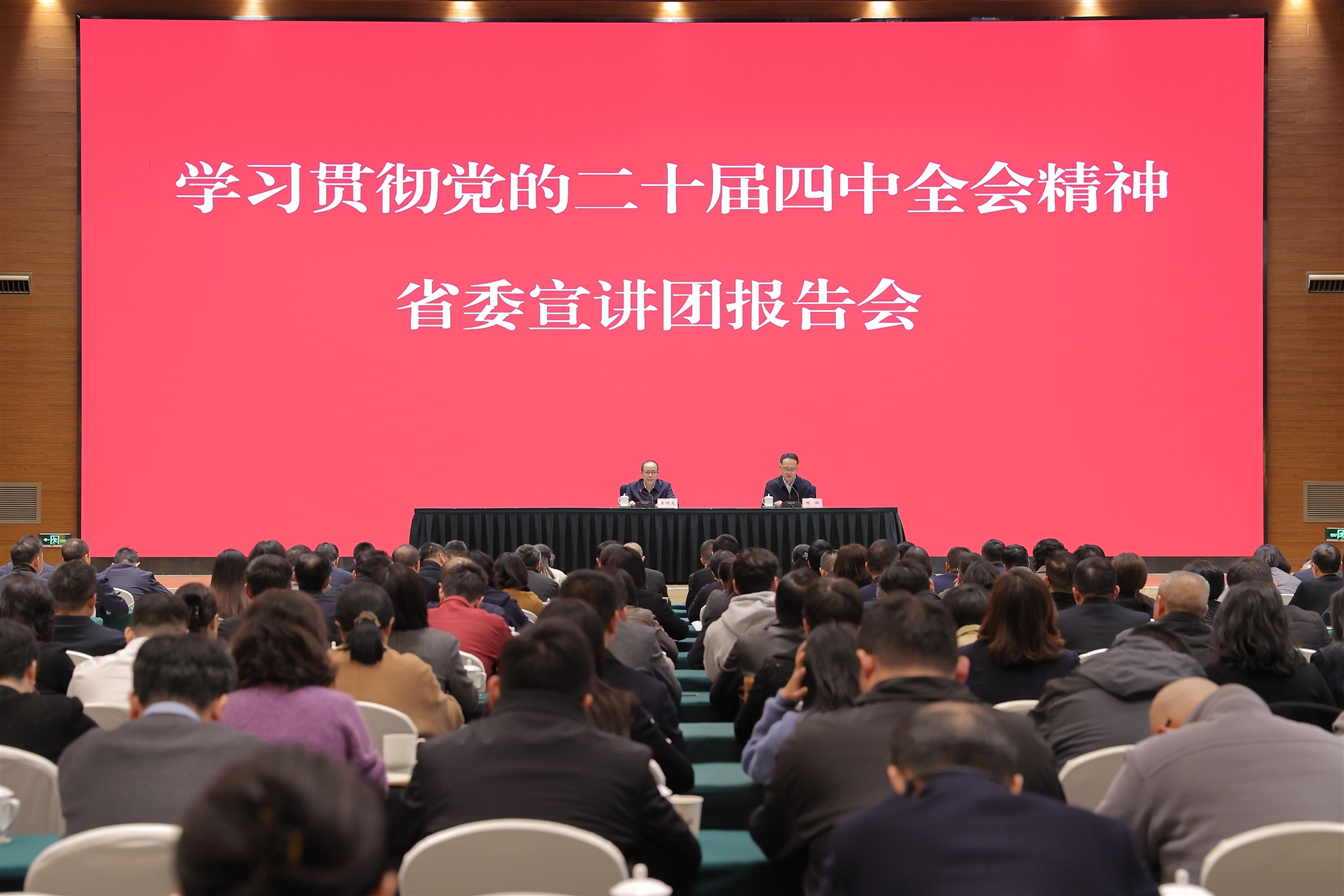 11月12日,學(xué)習(xí)貫徹黨的二十屆四中全會(huì)精神省委宣講團(tuán)省直機(jī)關(guān)分團(tuán)首場(chǎng)報(bào)告會(huì)在成都召開。省委宣講團(tuán)省直機(jī)關(guān)分團(tuán)負(fù)責(zé)人,省委省直機(jī)關(guān)工委常務(wù)副書記、省委省直機(jī)關(guān)黨校校長(zhǎng)黃傳龍作輔導(dǎo)報(bào)告。省委省直機(jī)關(guān)工委副書記、機(jī)關(guān)黨委書記鄧煒主持報(bào)告會(huì)。省直各部門(單位)機(jī)關(guān)黨委負(fù)責(zé)人和黨支部書記代表,以及省委省直機(jī)關(guān)工委、省委省直機(jī)關(guān)黨校黨員干部等320余人參會(huì)。