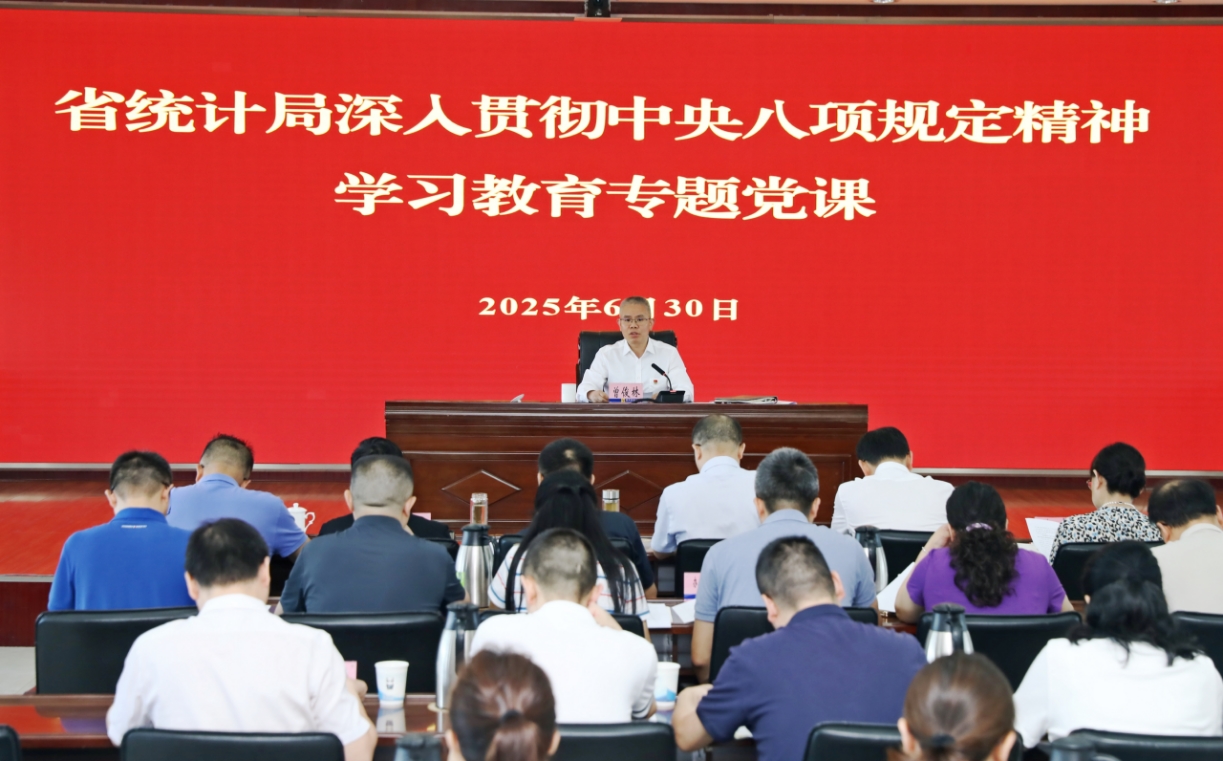 根據(jù)中央、省委關(guān)于深入貫徹中央八項(xiàng)規(guī)定精神學(xué)習(xí)教育的部署安排,6月30日,省統(tǒng)計(jì)局黨組書(shū)記、局長(zhǎng)曾俊林以“深入貫徹中央八項(xiàng)規(guī)定精神 以作風(fēng)建設(shè)新成效推動(dòng)四川統(tǒng)計(jì)事業(yè)高質(zhì)量發(fā)展”為題,為全局黨員干部講專題黨課。