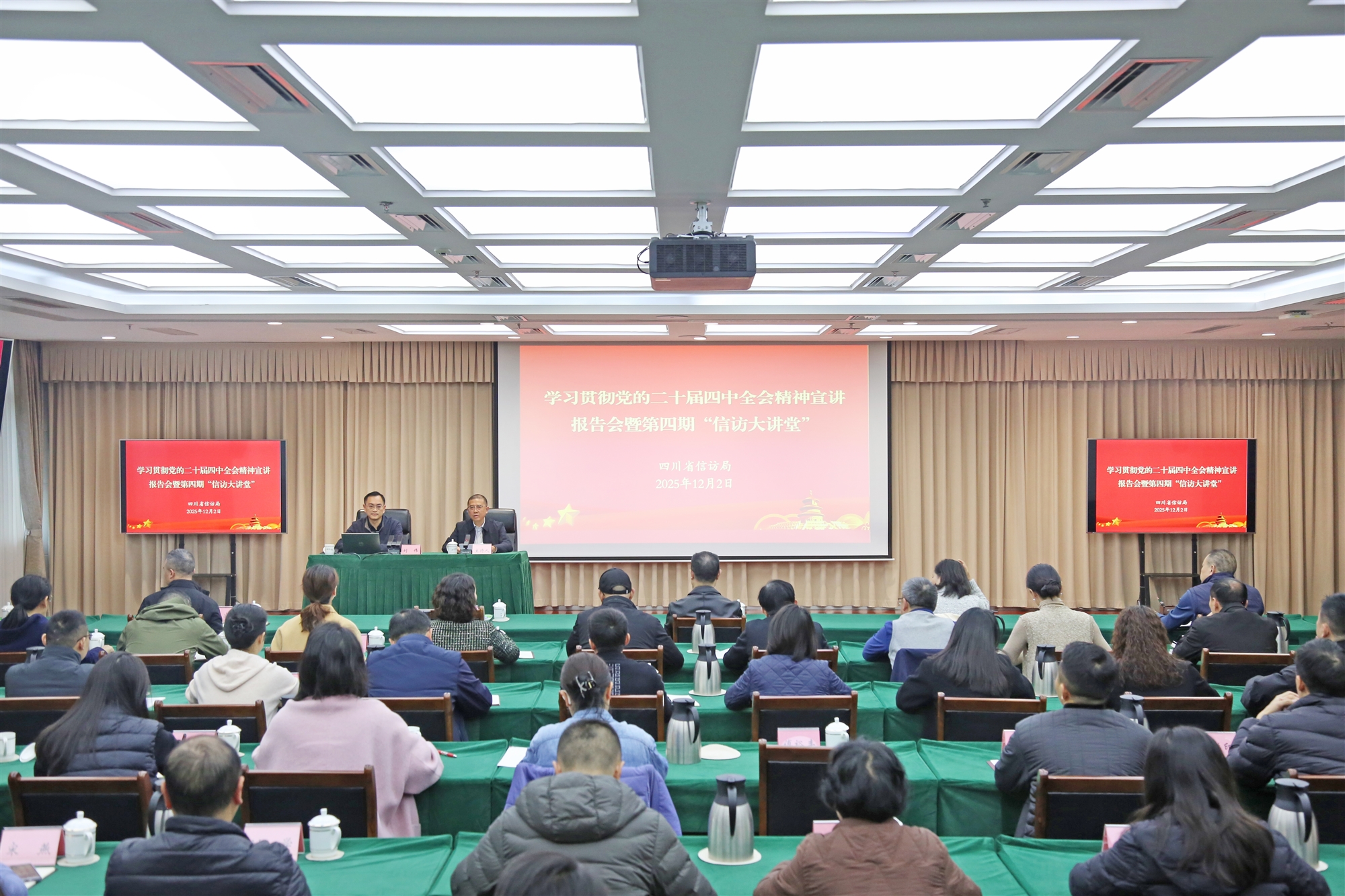 12月2日,省信訪局舉辦學(xué)習(xí)貫徹黨的二十屆四中全會精神宣講報告會暨第四期“信訪大講堂”。省委宣講團(tuán)成員、省委省直機(jī)關(guān)黨校副校長、教授劉偉作宣講報告。在家局領(lǐng)導(dǎo)和省信訪局全體干部職工、實踐鍛煉干部參加。報告會以視頻形式宣講到市級信訪部門。